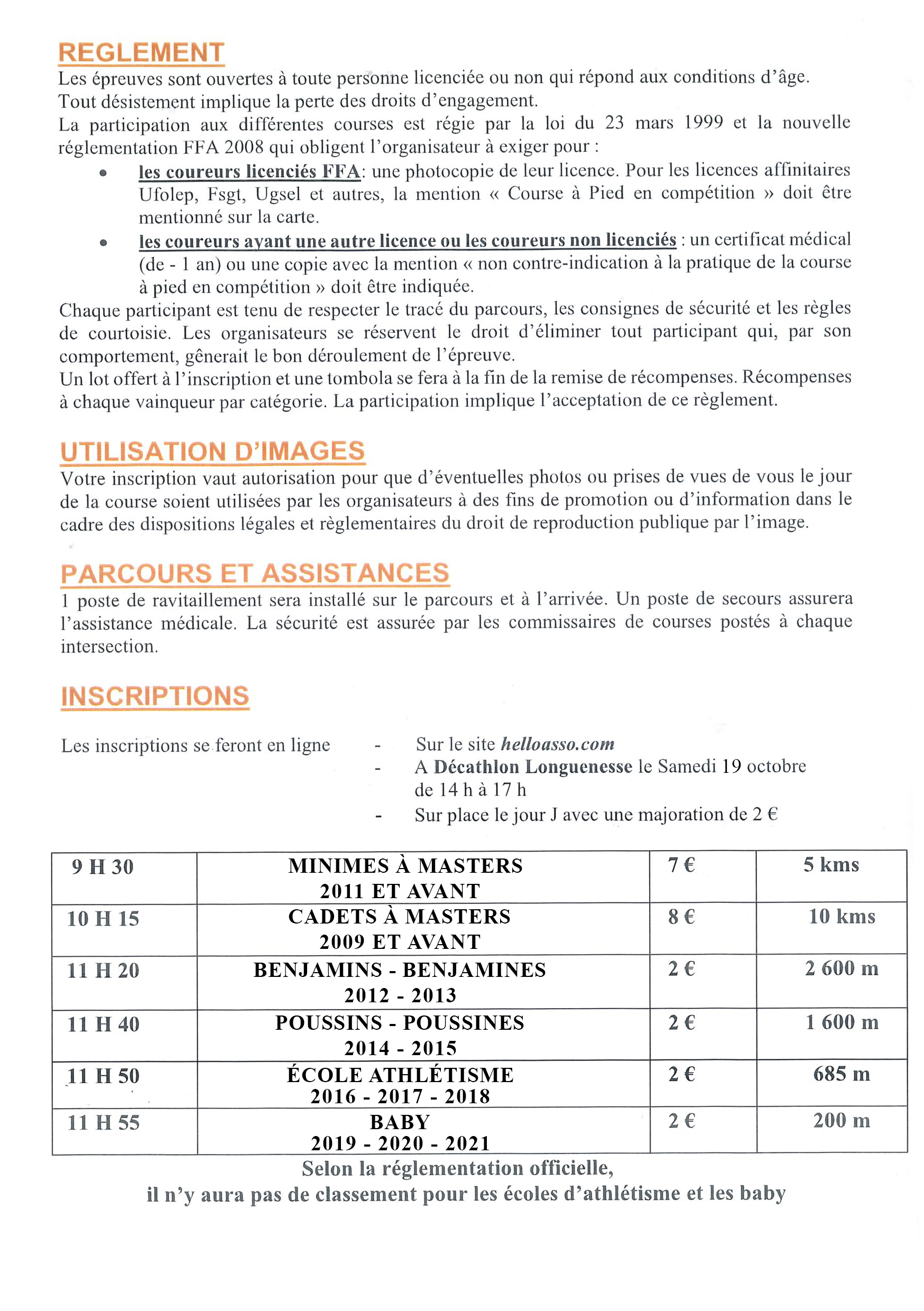 REGLEMENT, INSCRIPTIONS & PARCOURS